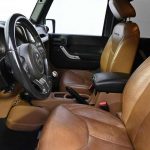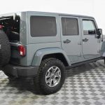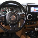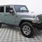 This 2014 Jeep Wrangler Unlimited Sahara commands attention with its distinctive Anvil Clear Coat exterior, featuring a body-color 3-piece hard top with rear window defroster and wiper/washer, matching body-color fender flares, privacy glass, fog lamps, heated power mirrors, and aggressive on/off-road tires mounted on aluminum wheels. The new Jeep styling is complete with front and rear tow hooks and rollover protection bars, offering the perfect mix of rugged capability and refined looks.