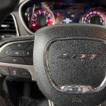 The driver-focused cabin offers heated and ventilated front performance seats, a heated leather steering wheel, dual-zone automatic climate control, HomeLink garage door transmitter, auto-dimming rearview mirror, and an advanced Uconnect 8.4 NAV system with an 8.4" touchscreen, GPS navigation, HD Radio, SiriusXM satellite and traffic services, integrated voice command with Bluetooth, and a premium harman/kardon audio system with 18 speakers.