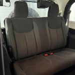 Safety and utility are bolstered by electronic stability control with traction control and brake assist, anti-spin differential rear axle, 4-wheel disc ABS brakes, front fog lights, fully automatic headlights, security system with panic alarm, integrated rollover protection, dual front impact airbags, and heavy-duty suspension with gas shocks. The Trailer Tow Group adds a Class II receiver hitch and 4-pin wiring, while the hard top includes rear window defroster and wiper/washer.