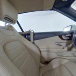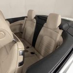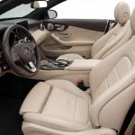 The upscale cabin seats four and features power heated front seats with driver memory and 4-way lumbar support, dual-zone automatic climate control, auto-dimming mirrors, HomeLink garage door transmitter, steering wheel memory with mounted audio controls, tilt/telescoping steering, illuminated entry, premium COMAND audio system with Bluetooth, single CD player, weather band radio, and convenient extras like a convertible roof wind blocker and glass rear window.