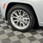 This 2021 Jeep Grand Cherokee L Summit stands out in elegant Silver Zynith exterior, featuring a commanding panoramic CommandView dual-pane moonroof with power sunshade, 20" fully polished aluminum wheels, LED projector headlights with auto high-beams and cornering lights, front fog lamps, chrome accents with body-colored cladding, heated power-folding mirrors with auto-dimming and turn signals, rain-sensing wipers, and a hands-free power liftgate for premium presence and practicality.