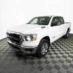 This 2022 Ram 1500 Big Horn is a capable full-size pickup with four-wheel drive, desirable Level B equipment, and practical add-ons like remote start and ParkSense for enhanced utility. Finished in clean Bright White exterior with a durable Black interior, it offers a one-owner certified history, strong value below KBB pricing, and mild-hybrid efficiency for work or daily driving.