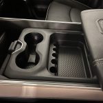 Inside, the Black leather-trimmed cabin seats up to six and blends rugged practicality with upscale touches. You get heated and ventilated front seats, a heated steering wheel, dual-zone automatic climate control, power-adjustable pedals with memory, and smart storage throughout the crew cab—ideal for long hauls or daily use.