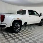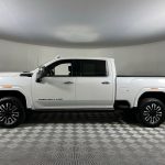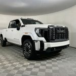The Sierra 2500HD Denali Ultimate commands the road in White Frost Tricoat with a bold Vadar Chrome Denali grille, 20-inch ultra-bright machined aluminum wheels, LED cargo lighting, and a spray-on bedliner with Denali logo. The X31 Off-Road Package, fog lights, and heavy-duty proportions give it a dominant, luxury-truck presence built for both work and style.