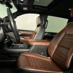 Inside, the Alpine Umber cabin showcases full-grain leather seating, heated and ventilated front seats, heated second-row outboard seats, a power sunroof, and a massive 15-inch head-up display. A 13.4-inch touchscreen anchors the tech suite with navigation, wireless Apple CarPlay and Android Auto, wireless charging, Bose 12-speaker premium audio, and SiriusXM 360L.